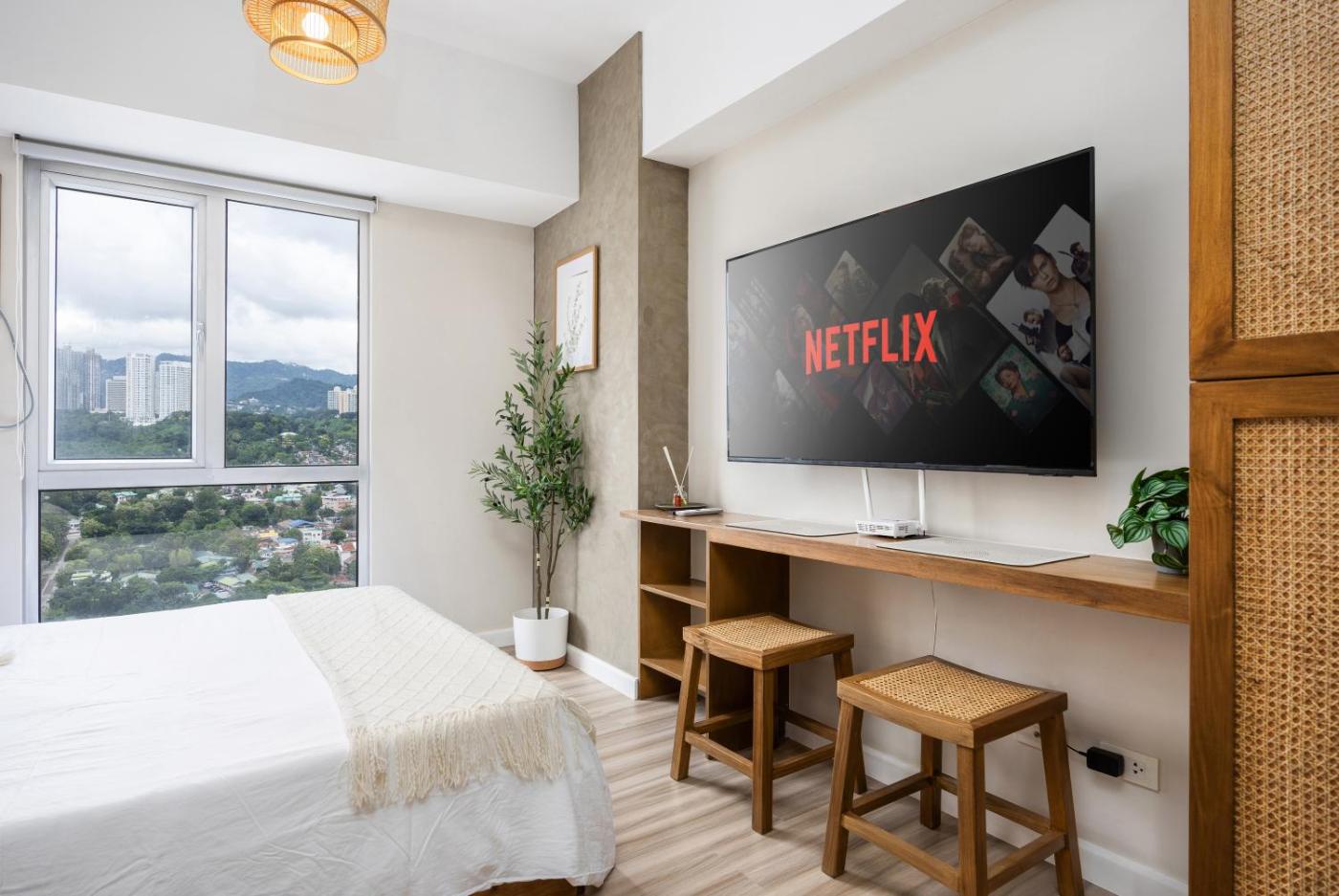 Deluxe Queen Studio. This studios standout feature is the pool with a view. Offering free toiletries, this studio includes a private bathroom with a bath, a shower and a bidet. The well-fitted kitchen has a stovetop, a refrigerator, kitchenware and a microwave. The air-conditioned studio offers a flat-screen TV with streaming services, a tea and coffee maker, a dining area, a wardrobe as well as mountain views. The unit has 1 bed.